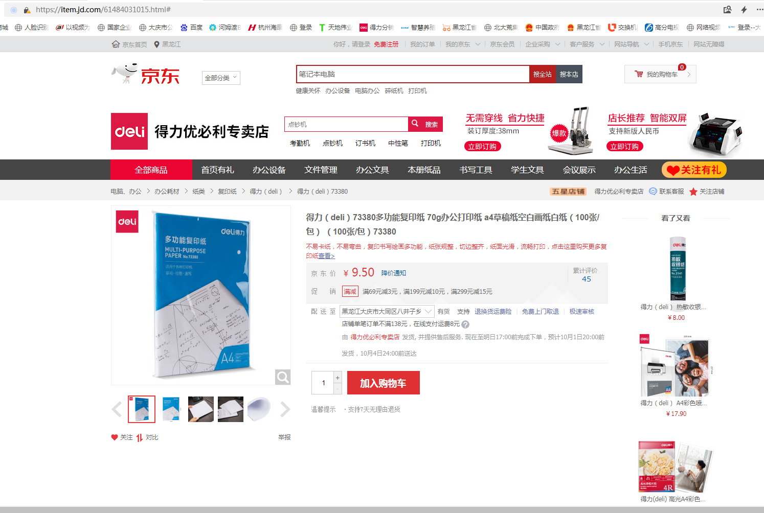 商品名称:得力(deli)73380多功能复印纸 70g办公打印纸 a4草稿纸空白画纸白纸(100张/包) (100张/包)73380
