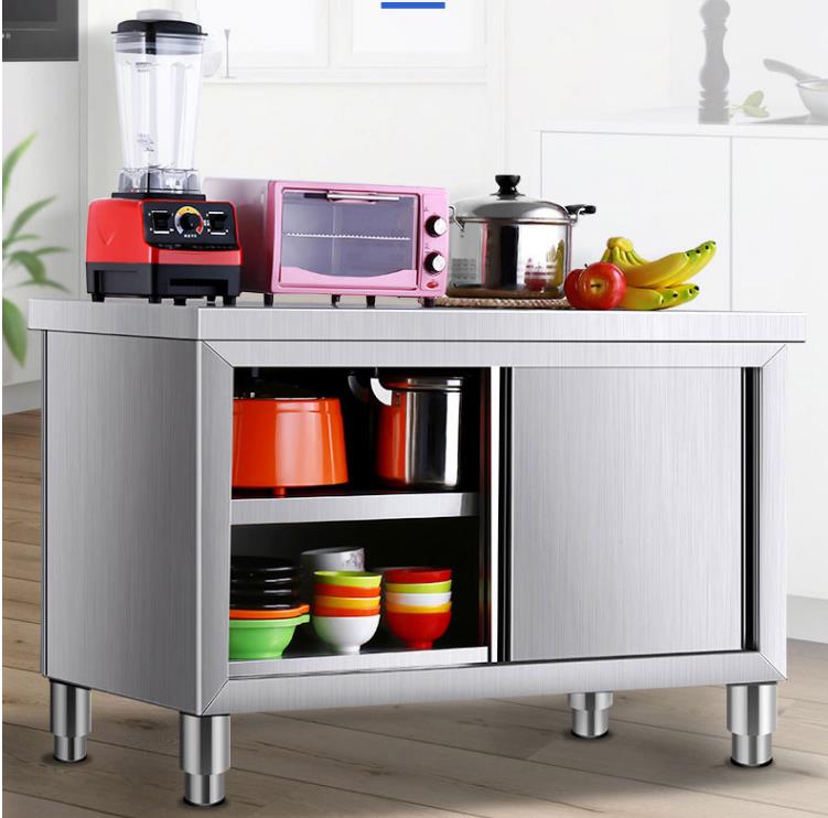 乐创 lecon 双拉门工作台 201型1.2*0.6米厨房操作台面不锈钢储物柜 LC-J-BG01