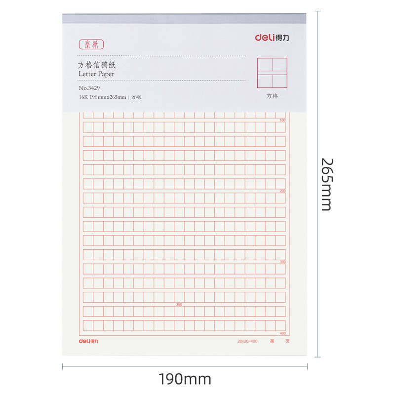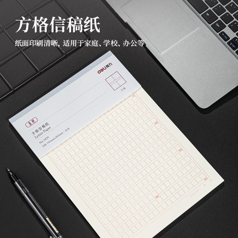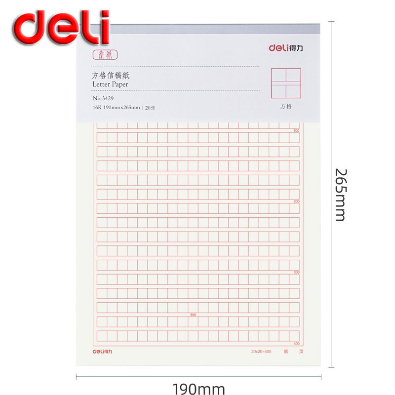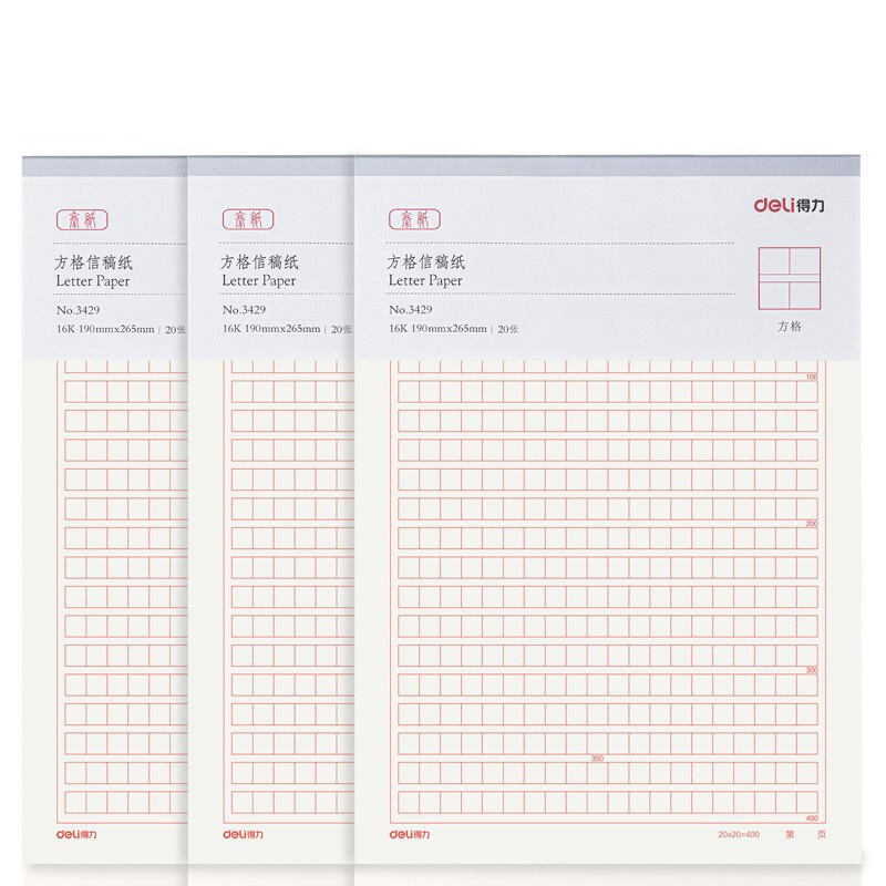 得力(deli)3本16K/20张方格信纸信稿纸 专用纸笔记本子信签纸草稿纸作业本 3429/本
