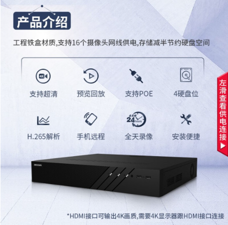海康威视网络主机监控硬盘录像机32路4盘4K超高清16路POE网线供电报警侦测NVR兼容8T硬盘 DS-7932N-R4/16P