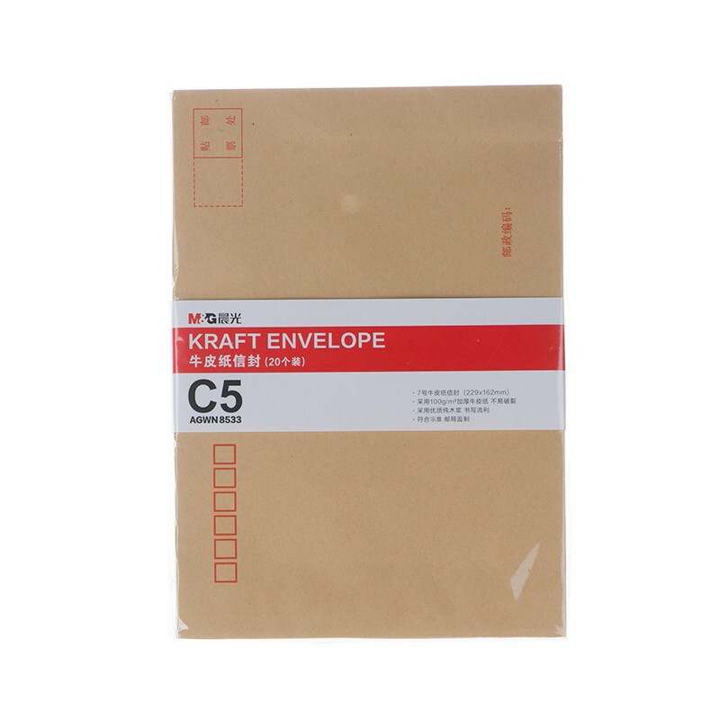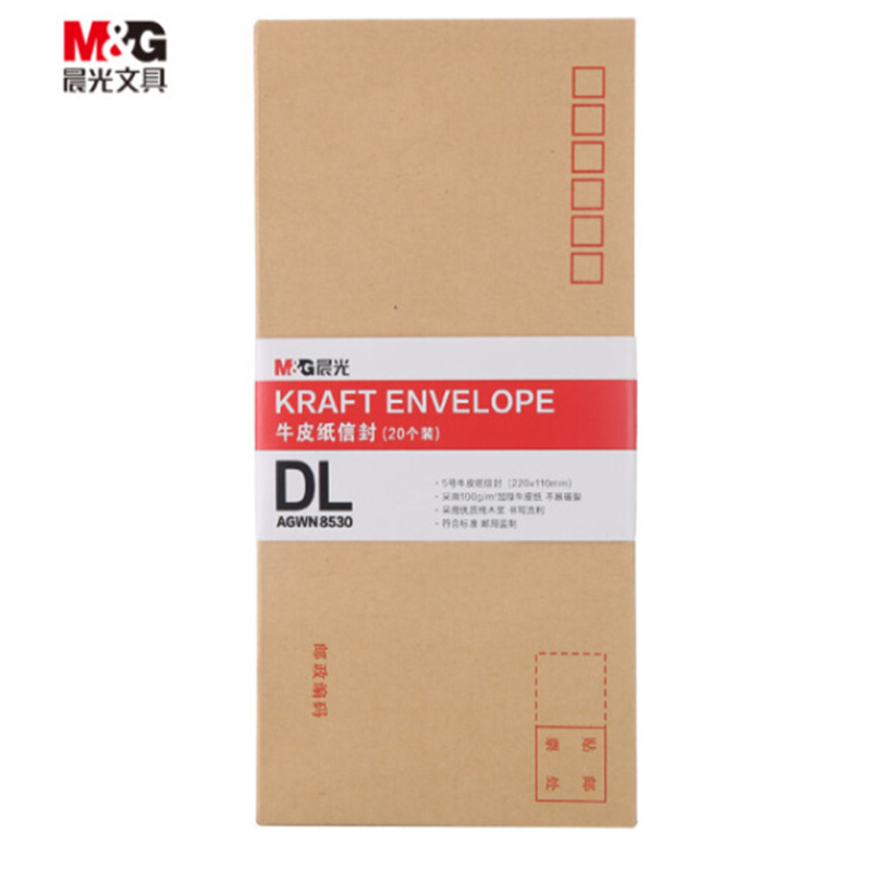 晨光(M&amp;G) AGWN8530 5号DL牛皮纸信封 220*110mm发票袋 邮局标准信封袋工资袋 20个装